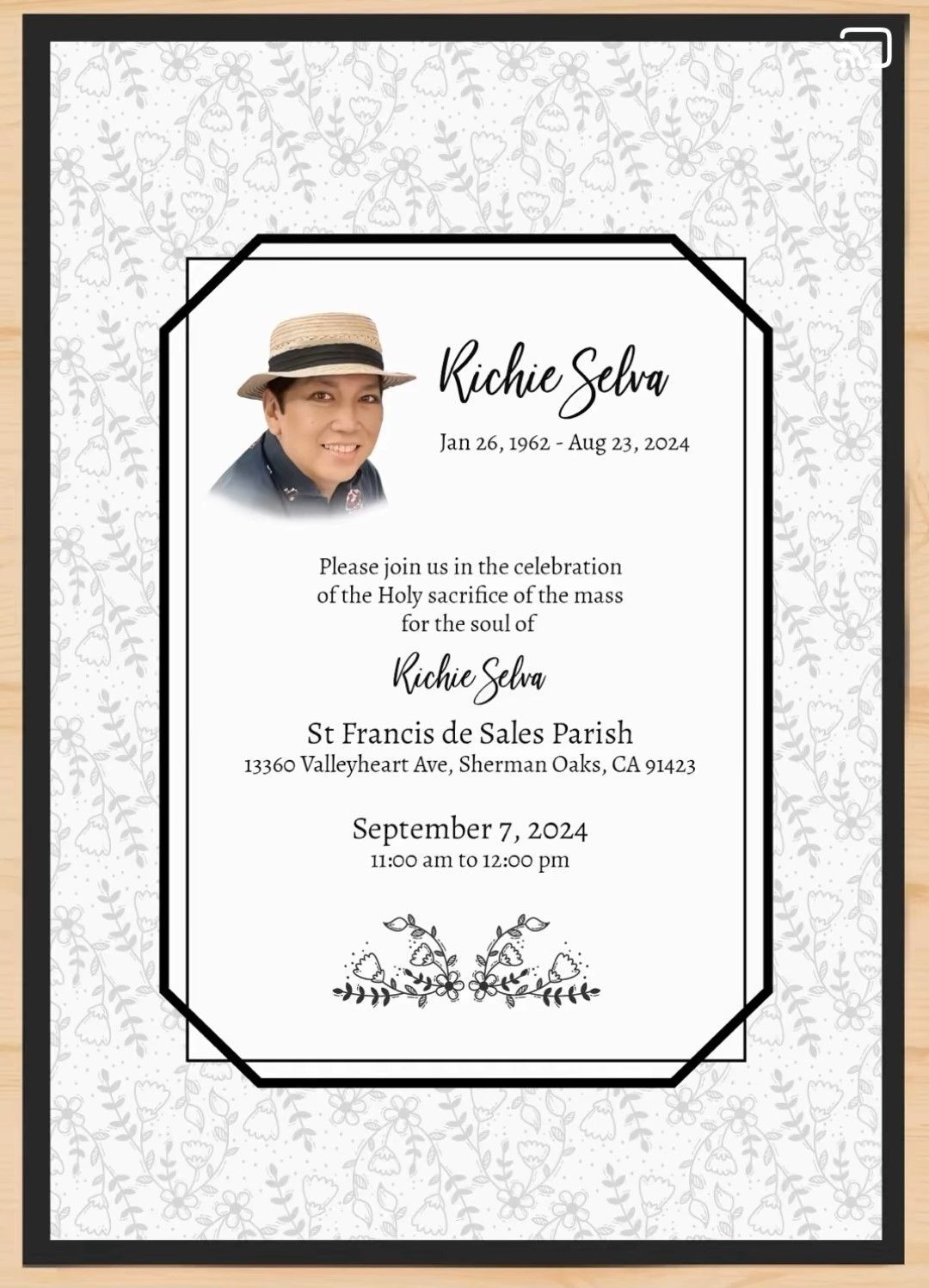 Today we come together to celebrate the remarkable life of Richie Selva, a beloved friend and former president of Asian Pacific Gays and Friends (A/PGF), who passed away on Friday, August 23, 2024, after a valiant battle with cancer.