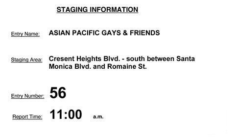 It's almost here! Pride Weekend! Please come bare chested or wear a SOLID WHITE t shirt or shirt - you'll understand when we're all assembled. Please be there no later than 11:45 am. Best to park near Robertson and Santa Monica and walk up to our spot on Crescent Heights. That way you car will be waiting for you at the end of the parade.