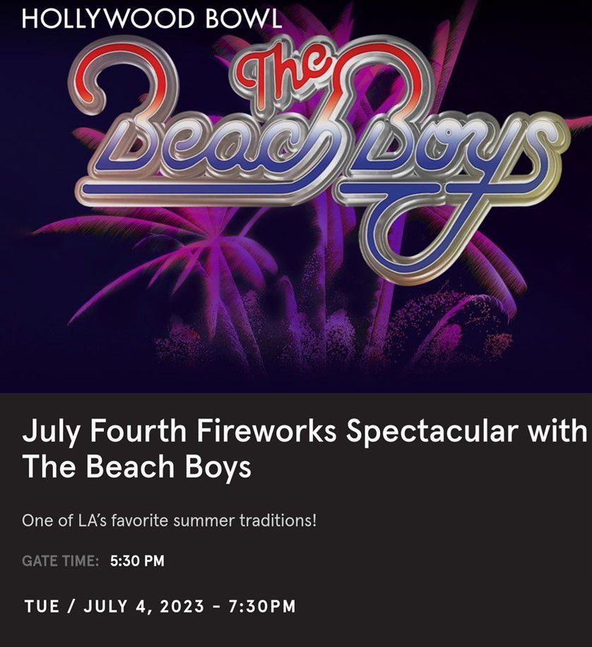 Join us for our after picnic fireworks concert with the Beach Boys at the Hollywood Bowl!